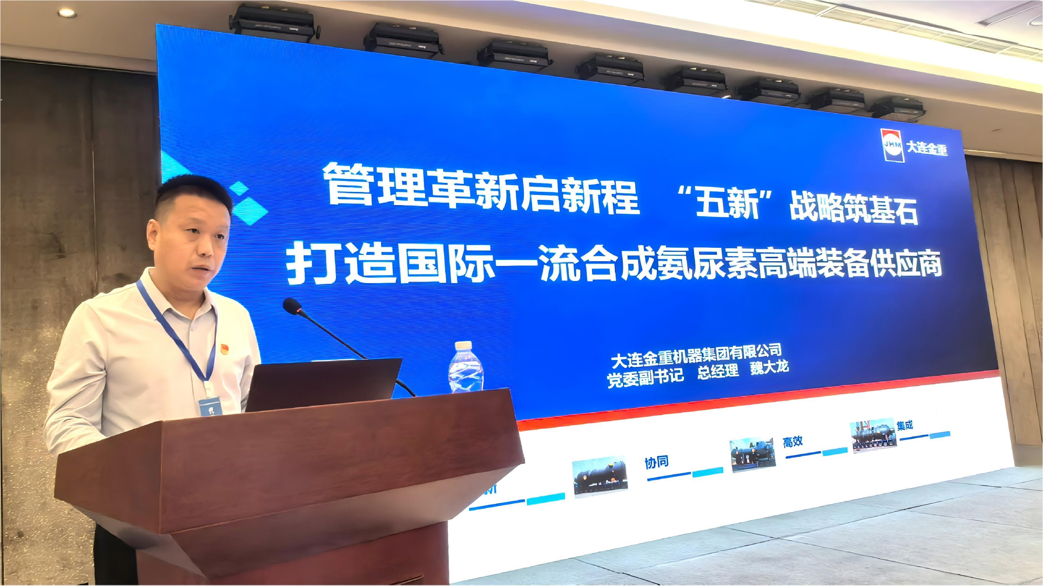 作為尿素行業(yè)中高壓核心設(shè)備制造商代表,大連金重董事長才紅廣、總經(jīng)理魏大龍應(yīng)邀出席。會議開幕,才紅廣首先作開幕致辭,魏大龍接續(xù)作《管理革新啟新程,“五新”戰(zhàn)略筑基石,打造國際一流合成氨尿素高端裝備供應(yīng)商》主題報告。